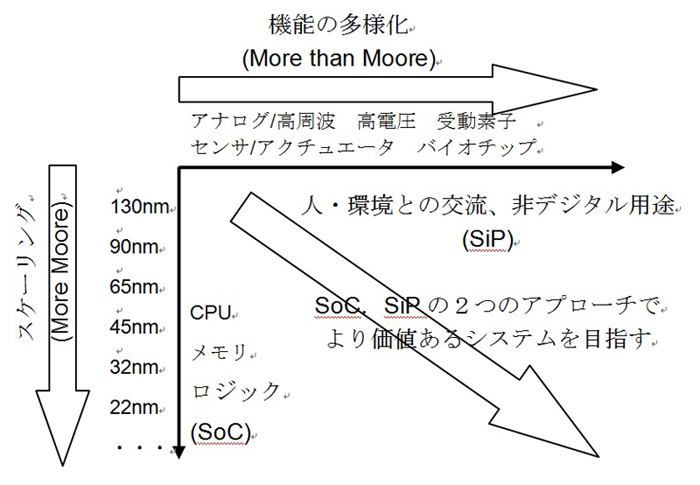 図9 SoCとSiPの目指す方向(2009ITRSロードマップ抄訳)