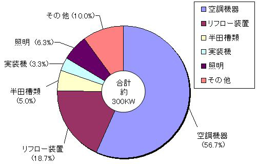 『全社の電力の使われ方(占有率)』を分析してみた結果、『(定常状態では)リフロー装置やはんだ槽などの電気容量の大きい機器も含め、生産設備をフル稼働し、照明も全点灯し、エアコンもフル稼働』したとしても『300KW』程度のはずなのに、請求書に記載されているデマンドは『333KW』だったのである。