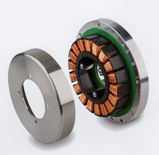 高トルク密度と最小の取り付けスペースを実現したECモータ。特徴は、①ロータとステータは、ベアリングやモータシャフトなしで個別に納品されるため、モータを...