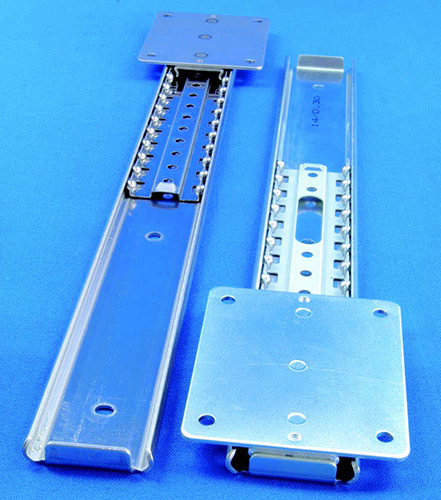 材質がSPCC製のスライドレール。特徴は、①高さ35mm、②リニアモーションタイプで、アウターメンバーの中をインナーメンバーが直線運動する、③プレート...