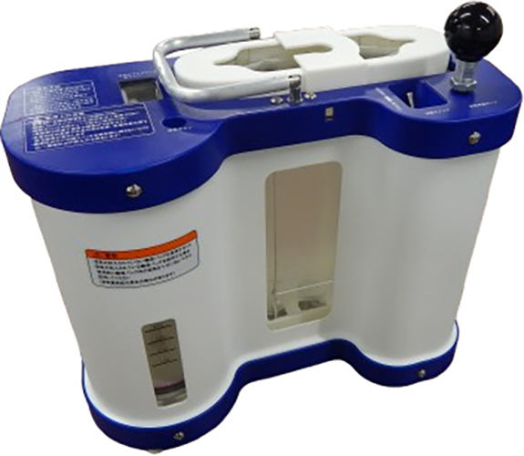 吊るさずに点滴をすることができる点滴静注500mℓ用ポンプ。特徴は、①真空技術の応用により電源が不要で、停電時でも使用可能、②落差不要で置く場所を選ば...