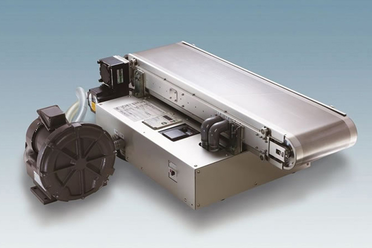 バキューム/吸着/吸引して位置決め、引っ張り、平坦/平面性を求める搬送に好適なスチールベルトコンベヤ。特徴は、①穴開スチールベルトを介してワークを吸引...