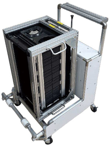 基板搬送装置基板の入ったマガジンラックを手軽に反転でき、作業現場の負荷を軽減する基板搬送装置。特徴は、①Mラック対応品で、カスタム対応可能、②回転方向は一方向で、...