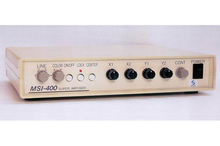 モニタ画面上に水平(X)、垂直(Y)方向にクロスラインをスーパーインポーズができるクロスライン発生器。特徴は、①ワンプッシュでセンタークロス(+)ラインを表示可能、②位置合わせ時の基準線/指標線や目視による線幅の検査などに使用可能、③『MSI-300AB』はカメラ電源付きのため、12Pinカメラケーブルを直接の接続が可能、④NTSC、S(Y/C)の入出力信号の対応可能、⑤個々の電子ラインをVR(ボリューム)にて移動可能、⑥ラインの色を白色から黒色に変更表示可能、⑦分解能も720(水平)×480(垂直)の高画素、など。