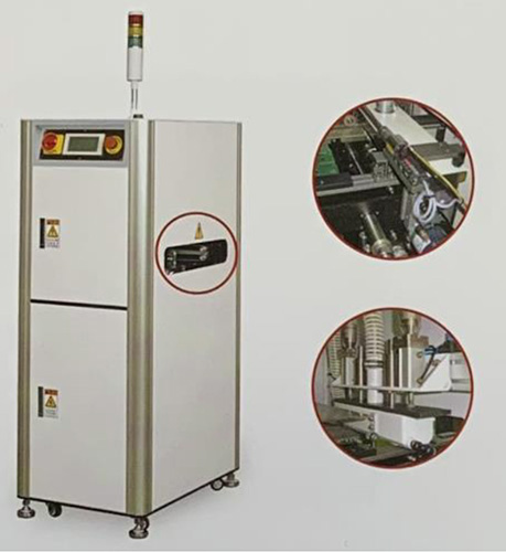 SMEMA規格インタフェースを搭載したバキュームクリーナ。特徴は、①外部大容量集塵装置、②非接触クリーニングのため傷の心配がない、③バキュームシステム、④タッチパネル操作、⑤バキュームローダ/マガジンローダコミュニケーション、コンパクトイオン発生機、自動幅調整システムなどのオプションパーツを用意、⑥最大基板:L330×W250mm(KNDRC-50S)/L530×W375mm(KNDRC-50L)、最小基板:L100×W50mm、など。