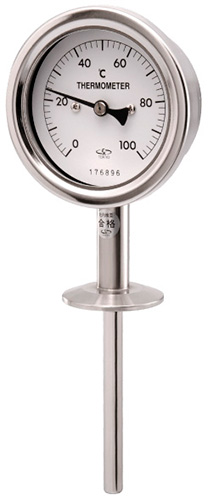 防振/防熱効果に優れた直結型温度計。特徴は、①激しいや感温部からの高熱などから計器部を守るようにスプリングを取り付けたタイプ、②エンジン/モータ/ブロワなどの軸受けの振動の激しい所やボイラ電気炉の高熱の発生しやすい所に最適、など。