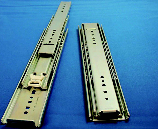 脱着用L金具が付いた中荷重タイプのスライドレール。特徴は、①ワンタッチで引き出しの脱着が可能、②左側用/右側用レールがある(L金具は共通)、③耐荷重:382〜451N/ペア、④35mm幅のレール、⑤材質は『3533』がSPCC、『U33』がSUS、⑥収納時保持機能を備えた『3533C』/『U33C』モデルも対応可能、⑦推奨ねじ:M4トラスまたはバインド小ねじ、⑧グリース:エピノッククリースAP(N)、⑨RoHS10、⑩受注生産、など。