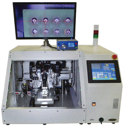 電気信号経路となる微少はんだボールをウエハや基板の上に配列させるためのボールマウンタ。特徴は、①はんだボール配列には同社独自の技術を採用し高いスループットの生産性を実現、②ストリップ/個片の両タイプ基板に対応したBGAボール搭載機、③小径はんだボールにも対応、④検査カメラによるボール搭載後のエラーを確実に検出、⑤ユーザーのプロセスに合わせ、前後工程設備との連結に対応、⑥ストリップ基板サイズ:27×150〜100×270mm、など。