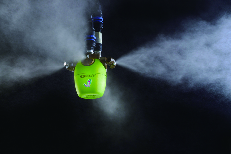 小型ファンで湿気流を一方向に強力噴射する一流体加湿器。特徴は、①小型ファン搭載で、スポット加湿や補助加湿に最適、②噴射方向の上下左右の調整ができ、ピンポイントでターゲットに向けて加湿可能、③オリフィスキャップパーツ(オプション)による噴射パターンや角度の微調整が可能、④噴射量(6MPa時)が2.5ℓ/時と1.8ℓ/時の2機種用意、⑤主要材質は、オリフィスキャップ:ナイロン、本体:ステンレス、ファン:アルミニウム/樹脂、など。