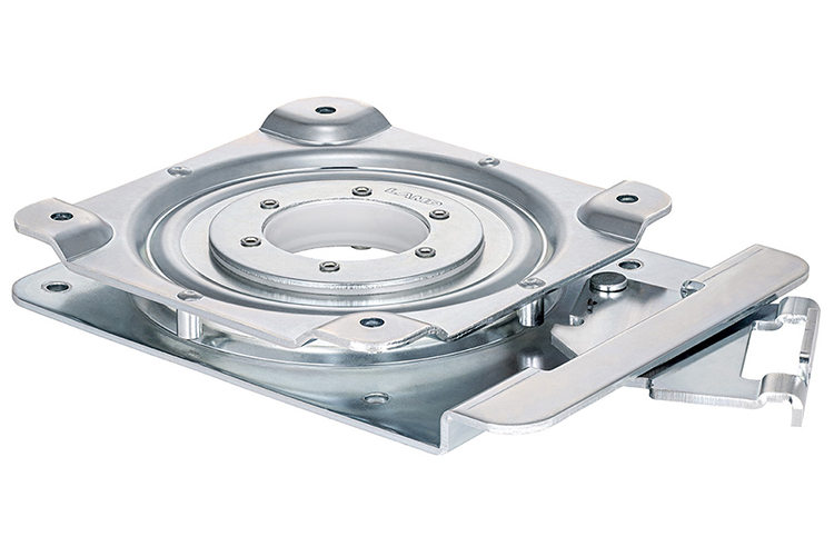 偏荷重にも対応可能な産業用の回転盤。特徴は、①360°回転が可能で、レバー操作により90°ごとにロックできるため、使用環境に応じて機器の向きを自在に変え、しっかりと固定することができる、②耐久性に優れ、10万回の回転試験および1.5万回の回転偏荷重試験をクリア、③フリクション機能を備え、回転時の滑らかさと安定性を両立、④中央には配線用の貫通穴を設けており、機器との接続性を確保、⑤レバー先端にはM5タップ加工を施し、グリップレバーやワイヤを取り付けることで操作性が向上、など。