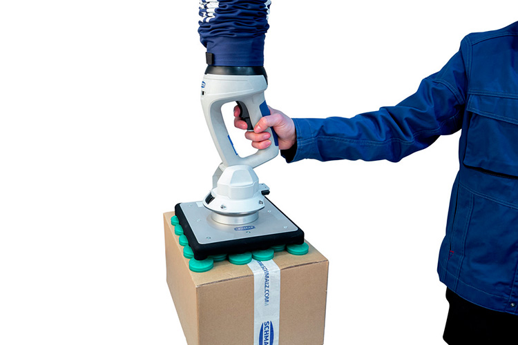 倉庫内でのピッキング作業に最適で、様々なフォークリフトやパレットトラックに組み合わせて移動が可能な移動式真空バランサ。特徴は、①どこへでも素早く移動できる機動性、②可搬重量40kgの片手で簡単に操作可能な真空バランサを搭載し、作業負荷軽減を実現、③バッテリー駆動のためコンセント接続不要、④本体はコンパクトに収納することができて低いゲートも通過可能なため、エレベータに乗せて異なるフロアでも使用可能、⑤倉庫内のレイアウト変更時にも柔軟に対応、など。