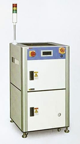 PLCコントロール、SMEMA規格のインタフェースを搭載した連結コンベア。特徴は、①ブザーLEDディスプレイ、②ダブルレート板による耐久構造、③スムーズで平行な幅調整、④スピードコントローラ、⑤自動幅調整システム、安全保護カバー、基板ホールドストッパ、前面ドア、冷却ファンなどのオプションパーツを用意、⑥最大基板:L330×W250mm(KNCH-80S)/L530×W375mm(KNCH-80L)、最小基板:L50×W50mm、など。