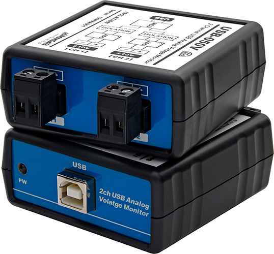 USB経由で2チャネルのアナログ電圧(±10V)を測定できる電圧モニタ。特徴は、①測定可能範囲:±10V、②測定精度:±0.05%FS以下、③USBと各チャネルは独立して絶縁(絶縁耐圧:DC2500V)、④付属のアプリケーションによりコンピュータ上で電圧値、スケーリング値、チャート表示などが可能、⑤専用の制御コマンドを利用することでユーザー独自のアプリケーションからアナログ電圧を測定可能、⑥鉛フリー実装で、RoHS指令に対応、など。