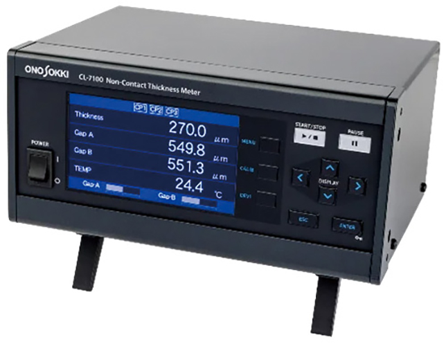 導体/半導体の厚さを非接触測定できる静電容量式非接触厚さ計。特徴は、①測定精度±0.05〜0.12%FS(センサとの組み合わせによる)、演算周期10m秒、②多点連続測定や高速ラインに対応し、検査時間の短縮と高品質な計測を実現、③温度測定/補正機能搭載、④Ethernet通信(オプション)、⑤CL-0740絶縁体計測機能の搭載により絶縁体の厚さ計測が可能(オプション)、⑥直感的に使えるカラー液晶タッチパネルディスプレイ、⑦小型/軽量/低消費電力化、など。