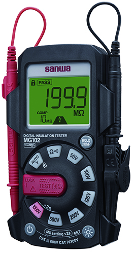 作業服の胸ポケットに収まるコンパクトな本体でありながら、CAT.Ⅳ300Vの安全規格に適合して、1000Vのテスト電圧を搭載するデジタル絶縁抵抗計。特...