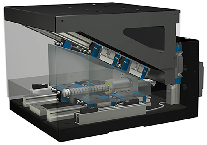 くさび機構を利用して、上下方向の精密位置決めを行うための精密昇降テーブル。特徴は、①くさび機構の案内部にローラタイプの直動案内機器Cルーブリニアローラ...
