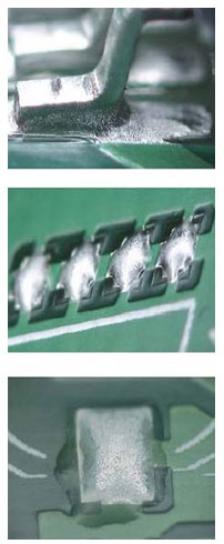ただし、はんだが固まる時間が遅れることでボイドや部品のずれ、特にフローのディスクリート部品ではスル—ホールとリード間の隙間が大きいものでは部品が動く可能性があり注意が必要である。