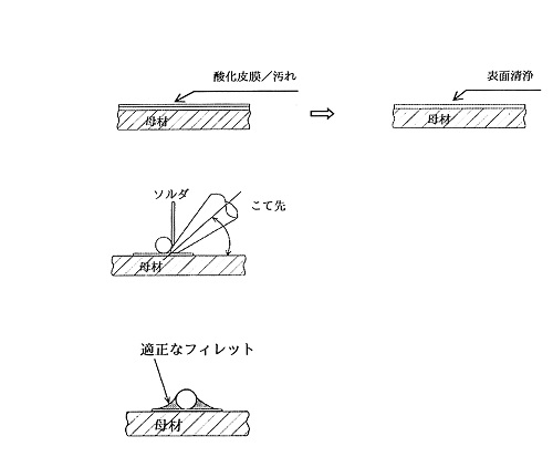 ① 接合母材の表面が「清浄化」できていなければ、はんだは付かない