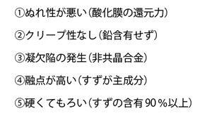 大手家電メーカーは(旧)通商産業省や工業会を中心に鉛を含まないはんだ『鉛フリーはんだ』の開発を開始した。その成果として提案されたのが、日本国内で主流となっているSn−3.0Ag−0.5Cuのはんだ用合金である。しかし、鉛フリーはんだの多くは従来のSn-Pb系共晶はんだと比較してSnの含有量が90%以上と多くなっているため、物性的には、表2に示すような特徴が出ている。その中でも、特にすず酸化物は金属すずに還元されにくいため、ぬれ性の低下を引き起こす結果となっている。 以上のように、実装業界にとって、はんだ合金の環境対策ははんだのぬれ性の低下をもたらすことになったのである。
