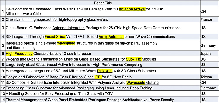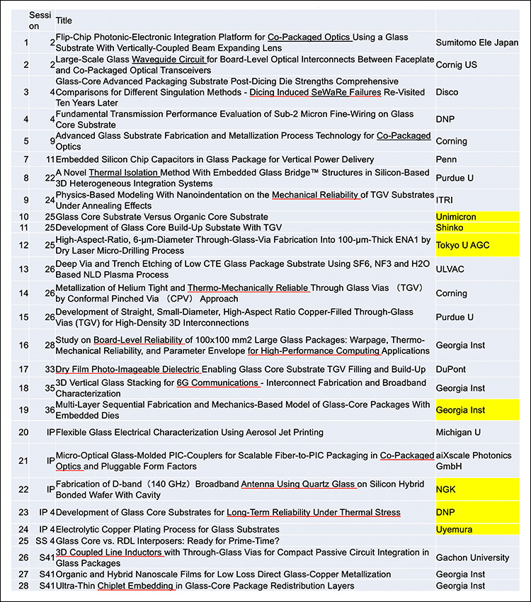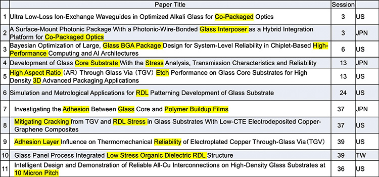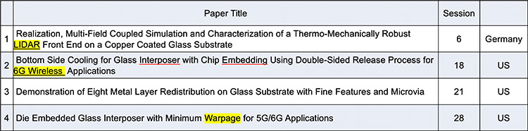 表7 ECTC2024でのGlass TGV PKG関連の論文