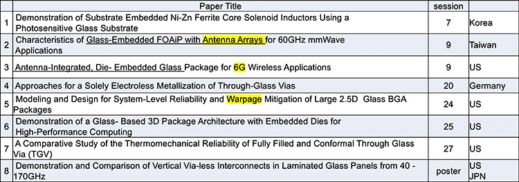 表4 ECTC2020でのGlass TGV PKG関連の論文