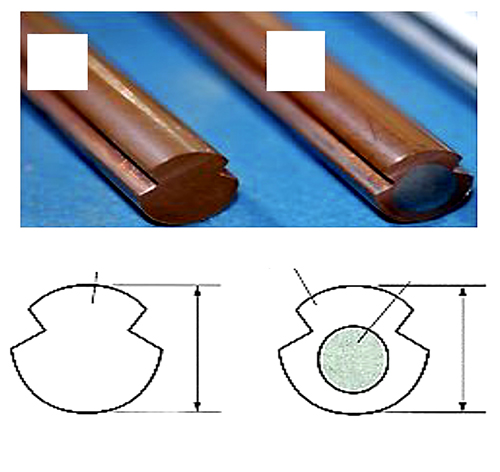 図6に断面を示すように、円に対して金具でつかむための溝を設けたものが一般的であるが、パンダグラフが通る度に曲がりが生じてひずみが発生する。