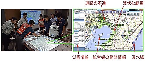 大規模災害発生時には、無線、電話やFAXなどを使って情報が伝達され、その情報は紙の地図やホワイトボードなどを使って共有されていた。