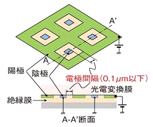 そこで、膜の厚さに依存することなく内部の電界を強めることができる新しいデバイス構造の検討に着手した(図7(b))。