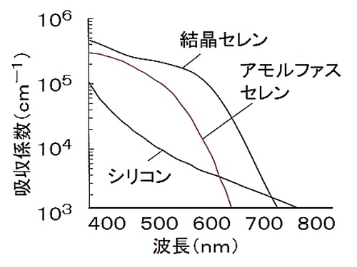 図9のように、結晶セレンはシリコンより可視光の吸収特性が優れている。