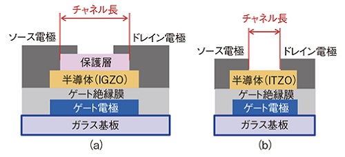 図13 (a)エッチストップ構造TFTと(b)バックチャネルエッチ構造TFT