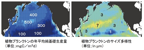 図6 北太平洋での植物プランクトンサイズの多様性が生産量と対応している