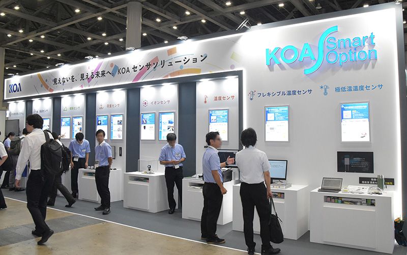 KOA(株)は、「見えないを、見える未来へ」をテーマに、新製品や参考出品の各種センサ及びシステムの展示を行っていた。
