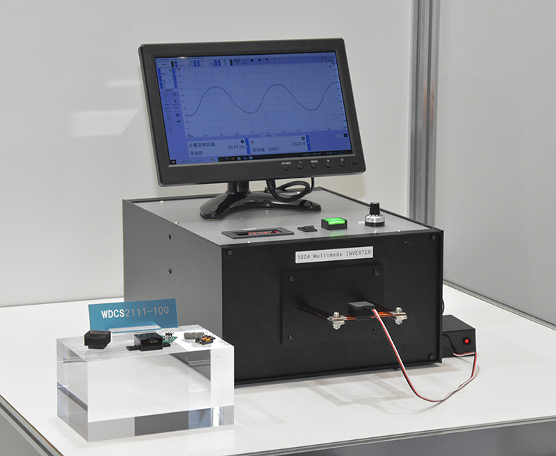 スミダコーポレーション(株)は、巻線式非接触電流センサ『WDCS』シリーズから『WDCS-2111-100』の展示とデモンストレーションを行っていた。