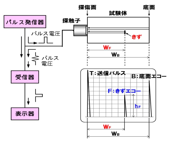 材料中の欠陥(キズ、クラック)検出することを超音波探傷試験といい、日本工業規格JIS3060などで規定されている。