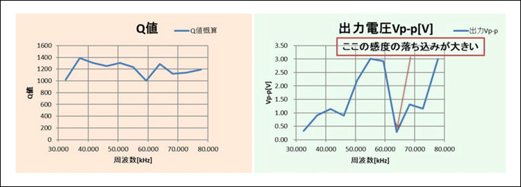 ここでは、周波数を掃引して出力レベルがどの程度変化するのかを測定し、確認した。ただし、ここではあくまで傾向を見るために行った実験であるので、送信側と受信側の位置関係と万力による押し付け力は厳密ではないないことを付言しておく。