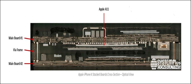 写真3 iPhoneXの2階建て構造の断面(上下方向を2倍に拡大)