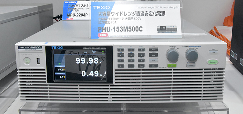 (株)テクシオ ・ テクノロジーは、大容量ワイドレンジ直流安定化電源『PHU-153M500C』の展示を行っていた。
