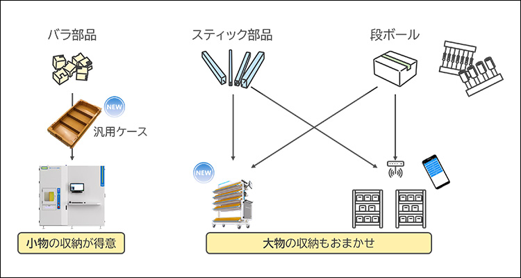 図6 収納イメージ(小物から大物まで、様々な部品サイズ・形状に対応可能)
