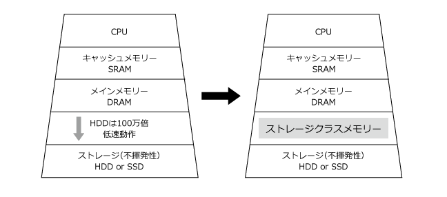 3D XPointメモリの用途として期待されるのは、ストレージクラスメモリである。