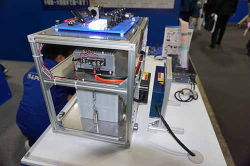 (株)ピー・アンド・プラスは、ユーザーからの多数の声を形にしたAGV用ワイヤレス充電システムの展示を行っていた。