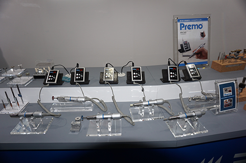 ミニター(株)は、コンパクトでありながらフルスペックを実現する小型/高性能D.C.マイクログラインダ『Premo』(ハンドピース&コントローラセット)の展示を行っていた。