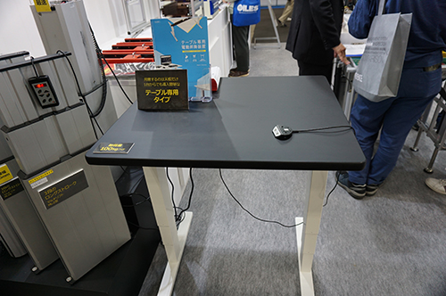 スガツネ工業(株)は、電動昇降テーブルが1台から簡単に導入できるドイツ製テーブル専用電動昇降装置の展示を行っていた。