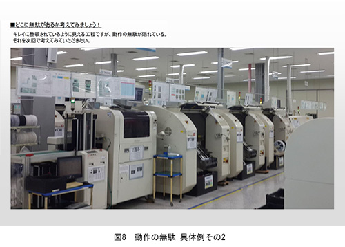 そこで、宿題、である。図8に示した工程写真の中に、動作の無駄が隠れている。考えてみていただきたい。