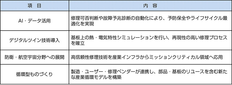 今後、国内製造業が脱炭素・リソース最適化を進める中で、回路基板修理は「現場を支える技術」から「経営を変革する技術」へと進化していくことが期待される。