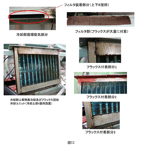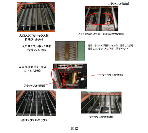 フィルタを装着し、フラックスの蓄積・付着・滴下の防止を実現した。
