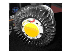 ICで発生した熱は、なんらかの放熱経路を経て空気や機器筐体まで逃がしてやらなければならない。放熱経路の各所には熱抵抗があるが、それらを合計したトータル熱抵抗に比例してICチップの温度が上がる。LED照明の場合、チップの発熱量は1個1W程度であるが、これをダウンライト(電球型ランプ)の場合は数個、蛍光灯タイプの場合は百個以上、プリント配線板に並べて実装する。LED照明では発生した熱は最終的にはヒートシンクから大気中に放熱される。LEDランプの外面はほとんどヒートシンクで占められている(図11)。放熱経路のトータル熱抵抗中もっとも大きいのがLEDを搭載するプリント配線板の熱抵抗なのである。そこでプリント配線板には通常のプリント配線板にくらべて格段に熱抵抗の小さいものが要求される。それが放熱基板である。