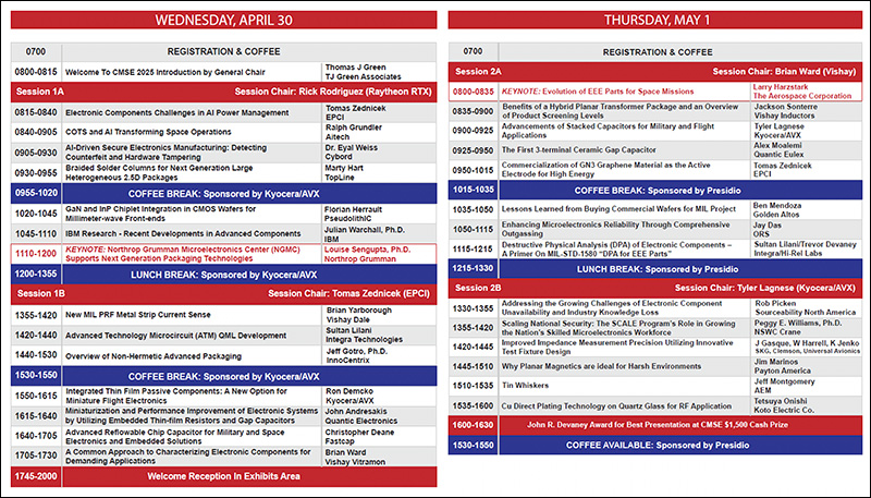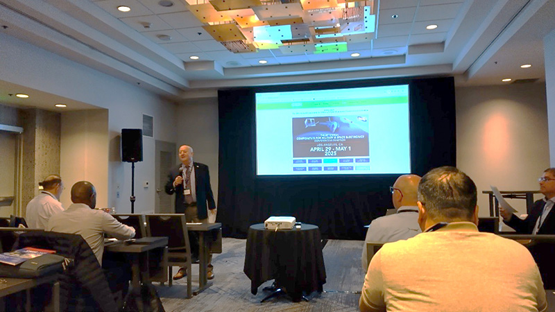 ロサンゼルス空港近くのホテルにおいて、2025年4月29日(火)〜5月1日(木)の3日間、第28回 CMSE(Component for Military & Space electronics Conference & Exhibition)2025(図1)が、36件のブース展示会併設(図2)で開催された。