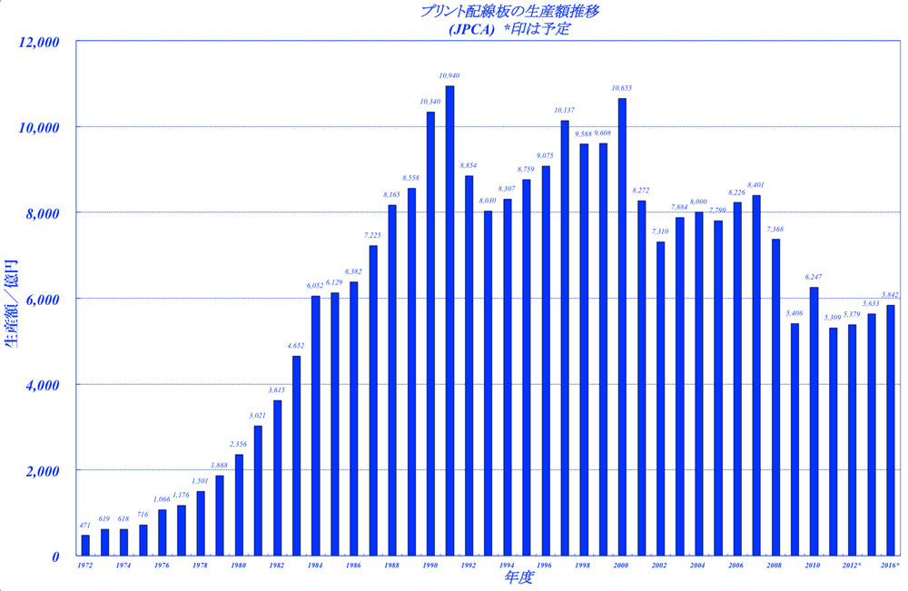 図5をみると電子機器に使用されるプリント配線板の使用金額は年々、増加傾向にあることを示す。このようなグラフを簡単に描くことができ、傾向を分析することが可能となる。情報整理して、後はどのように活用するかにある。これが『情報』を保存しておいたことに価値があり、そして保存した資料の活用が重要であることを示すものである。