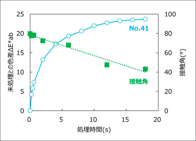 図4試験紙タイプ(No.41)の変色色差と接触角の相関