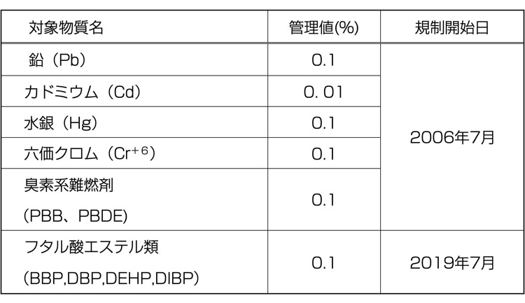 そもそも、RoHS規制を検討するきっかけとなった事案があった。ヨーロッパのある国のクリスマス商戦で、日本から輸送されたゲーム機の電線からCdが検出されたため、税関を通過できなかったことが発端と言われている。安定剤として添加されたステアリン酸カドミ二ウムが検出されたのであろう。当時は、ヨーロッパから日本製品を排除するための「嫌がらせ」との論調もあったが、環境問題を重視するヨーロッパにとっては当然の判断であったかもしれない。尚、プラスチックの安定剤には、ステアリン酸鉛も使用していた実績もある。